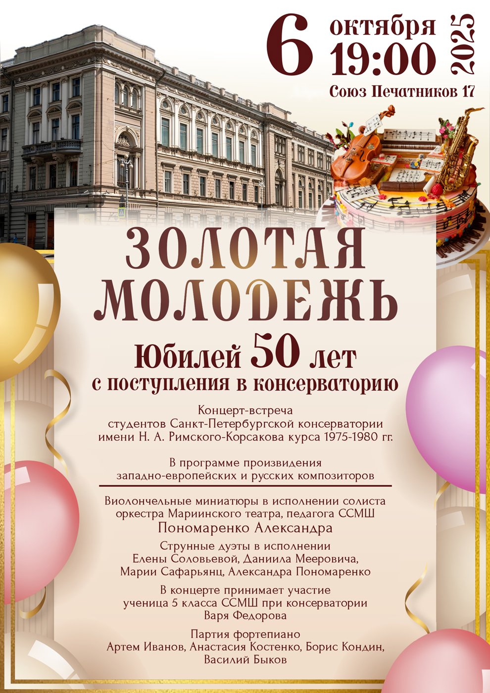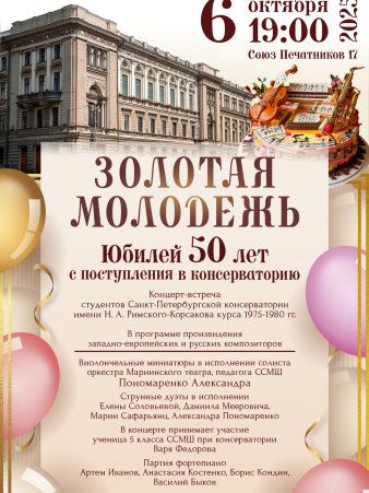 Друзья, зовем на концерт камерной музыки в понедельник 6 октября в 19.00, посвященный 50 -летию поступления в концерваторию выпуска 1975-1980 г.г.
