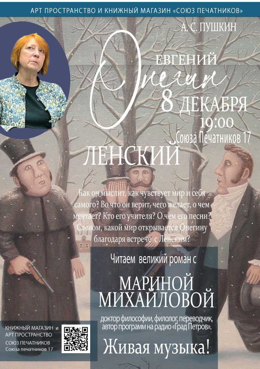 Друзья, ждем в четверг 8 декабря в 19.00 на очередной Онегинский семинар с филологом Мариной Михайловой — первый зимний