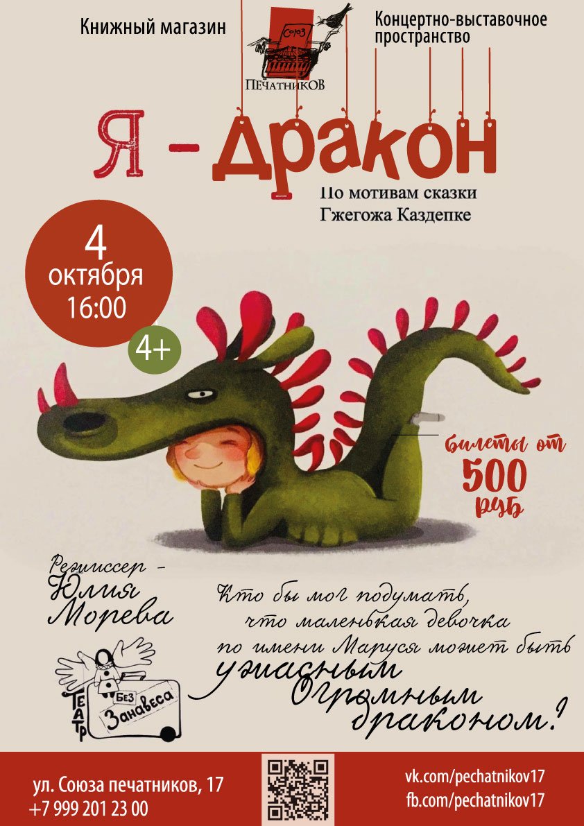 в «Союзе печатников» премьера детского кукольного спектакля «Я — дракон».