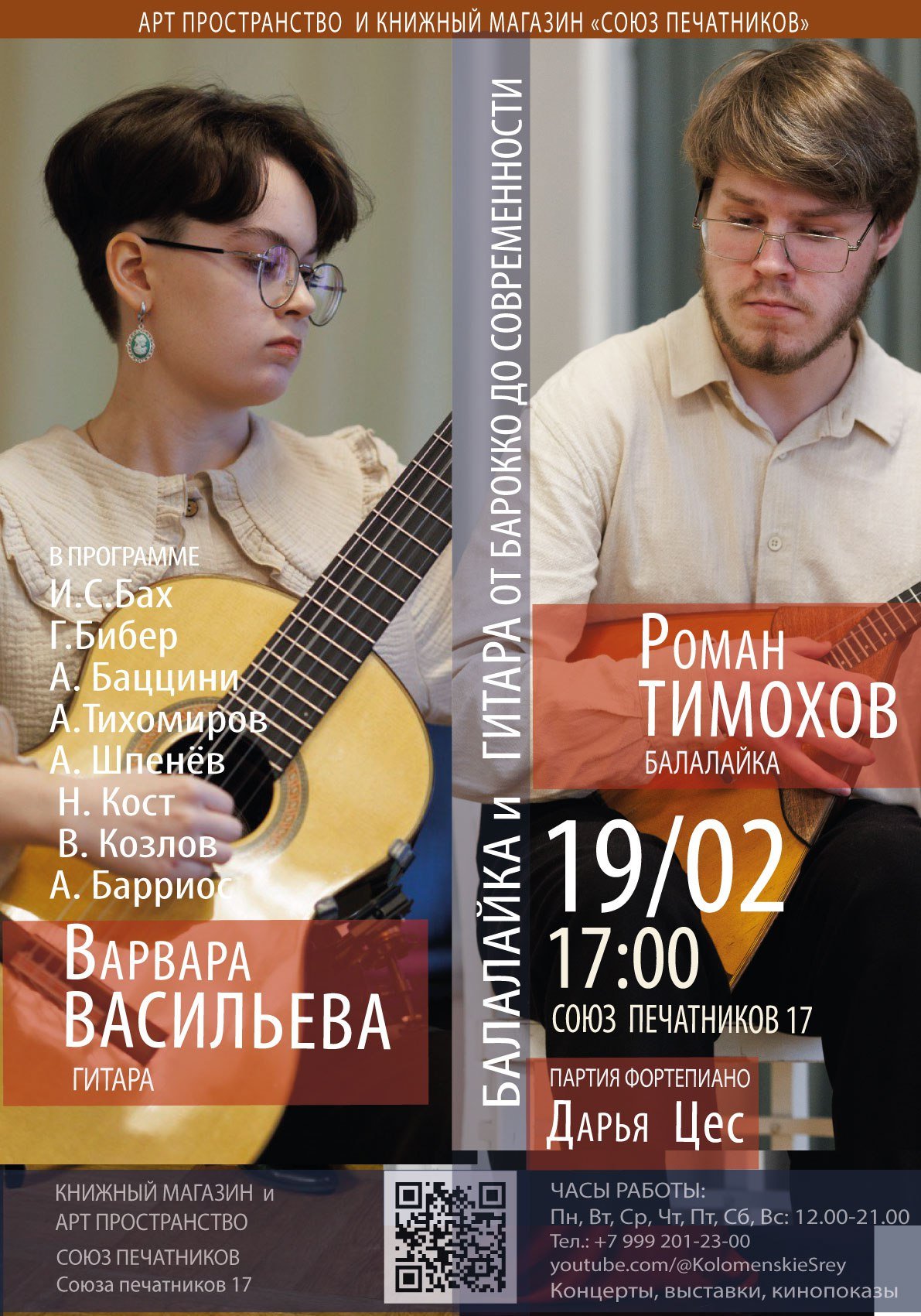 Камерный концерт В Арт-пространстве «Союз Печатников» состоится камерный концерт 15 февраля в 16.00 на концерт «Балалайка. Грани возможного».