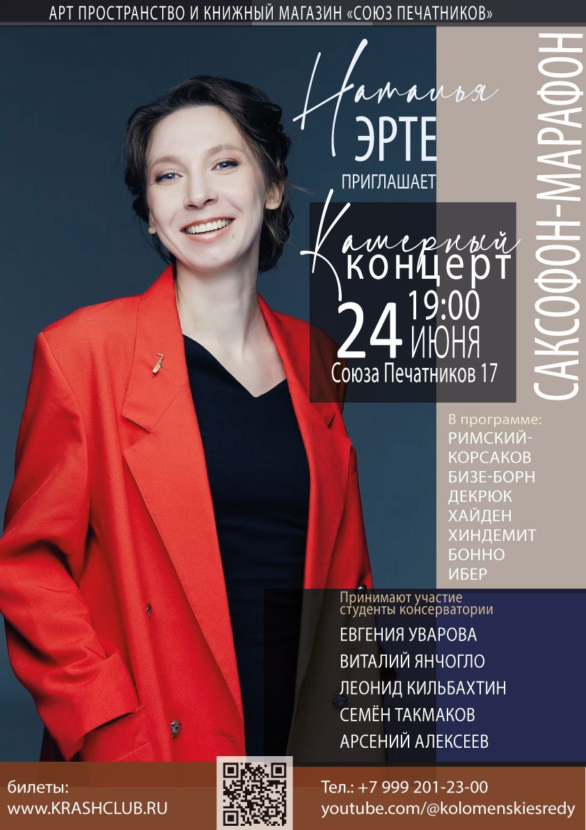 Друзья, зовем на концерт камерной музыки для 19.00, все разнообразие классических инстурментов и саксофона под руководством замечательной пианистки - Натали Эрте.