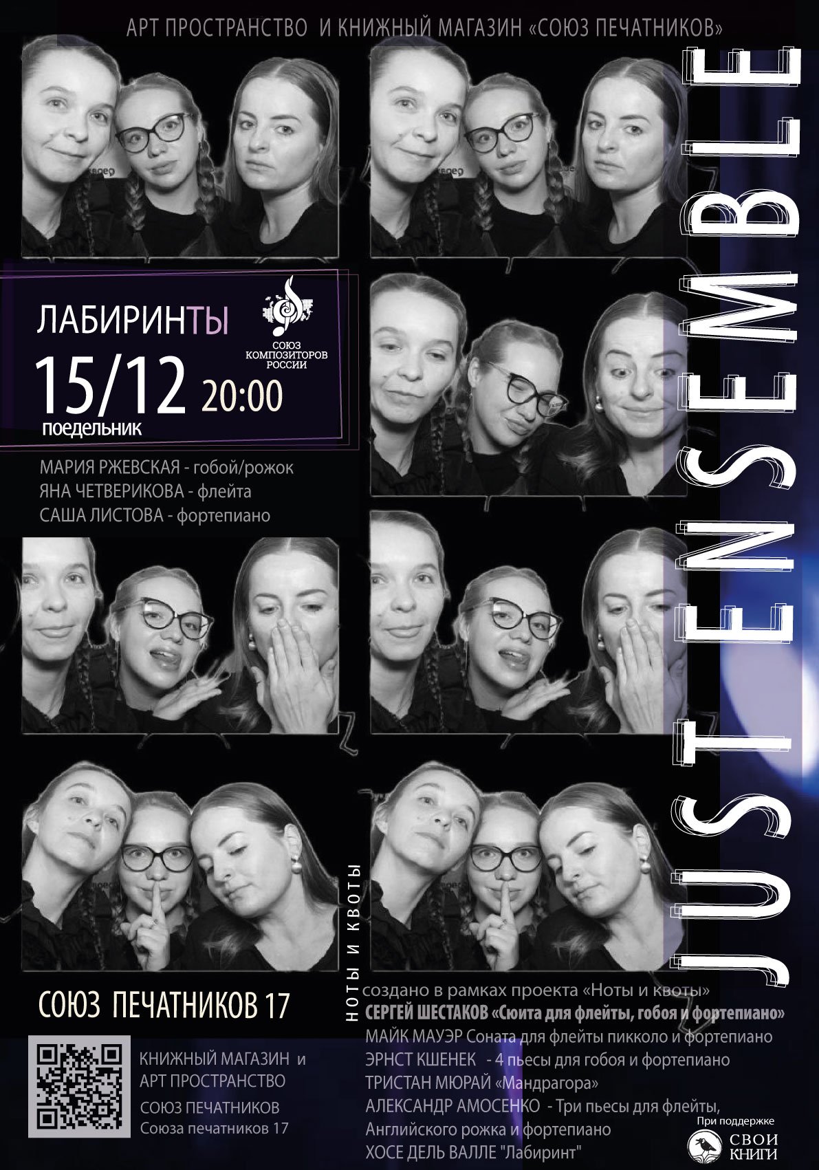 JUST ensemble 15 декабря 20:00 Книжный магазин, Союза печатников, 17.