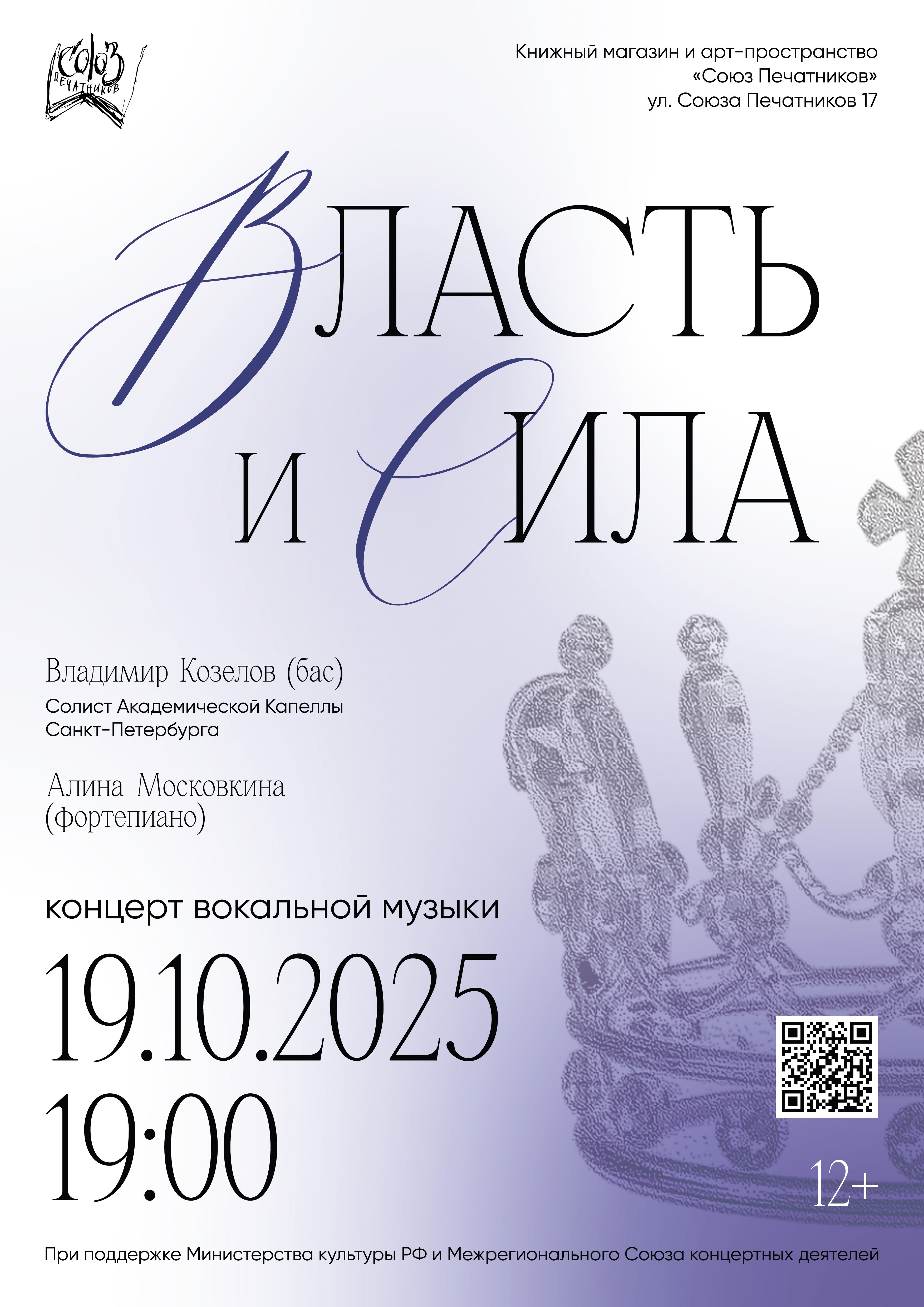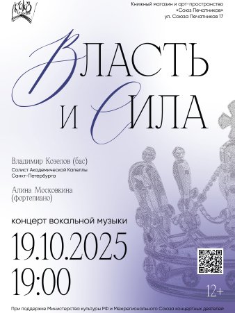 19 октября 2025 г. солист Академической Капеллы Санкт-Петербурга Владимир Козелов приглашает на концерт классической музыки в арт-пространстве "Союз Печатников". В программе прозвучат оперные арии для низкого баса, в которых композиторы передавали характеры персонажей-правителей, военачальников, музыкальное видение власти и силы. Произведения будут сопровождаться краткой музыкально-исторической справкой.
